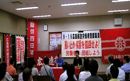 各産別の労働者、そして郵政労働者、ゆうメイトの青年と同じ職場で働くゆうメイト、正規職労働者が続々と支援闘争、勤務を終えて「9・16郵政労働者団結集会」に参加しました。