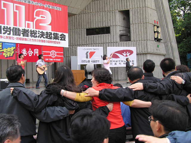 萩原進反対同盟事務次長は「労働者と農民の連帯の中にこそ、未来がある。国際連帯こそが、世界を人民のものとする」と熱いアピール。