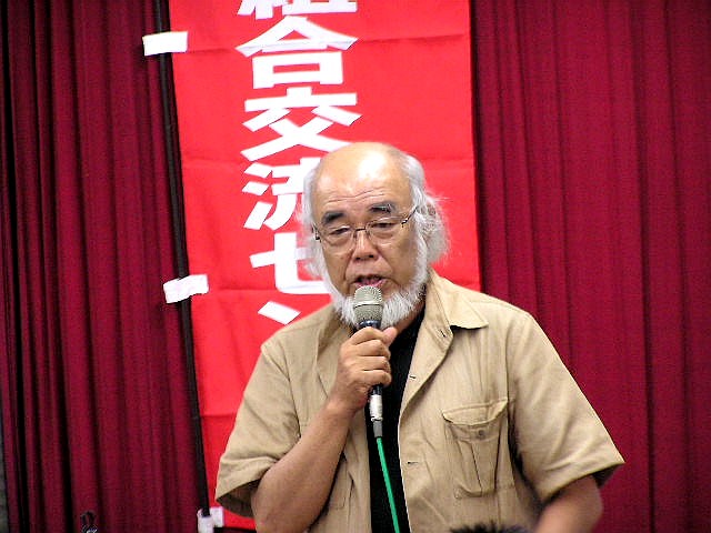 青年教育労働者の司会で始まった集会は、先ず、「8・6広島-8・9長崎反戦反核全国統一実行委員会」の事務局長、われらが親分の三角忠さんの主催者挨拶から。