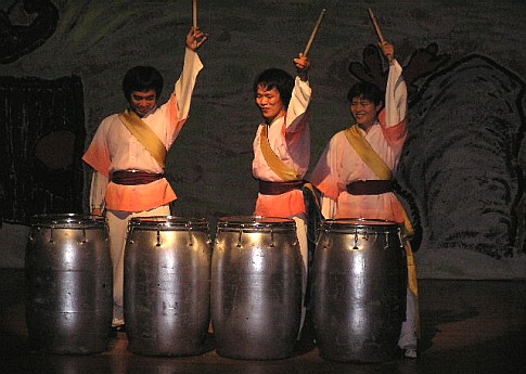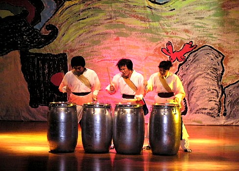 朝鮮農村地帯の伝統的農楽の復権と伝承に、力を注いでいる青年の活動グループ(釜山一の芸能集団らしいです)の舞台を拝見。