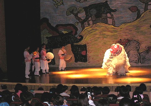 タルチュム(仮面劇)の一種なのでしょうか?子どもたちが待ちに待ったお獅子の登場です。 朝鮮のお獅子はとてもユーモラスです。