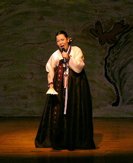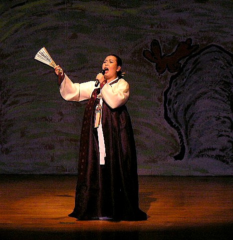 パンソリの歌い手は、歌と語りと舞いもこなします。