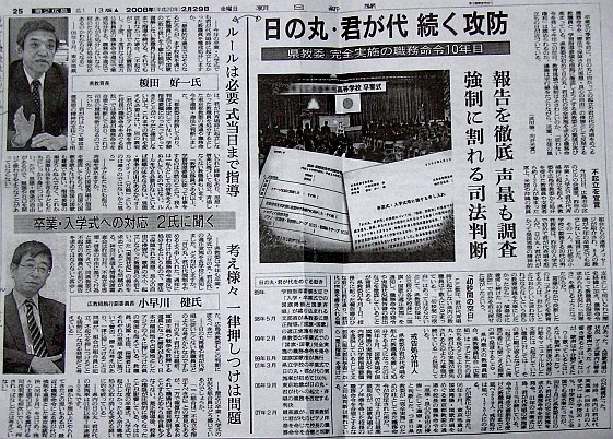 2月29日金曜日の朝日新聞、25面には、「君が代」強制について、マスコミ労働者の渾身の記事が載っています。