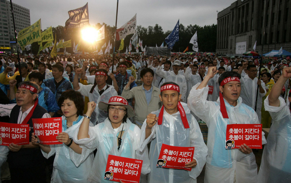 ゼネスト闘争方針の一つに「キャンドル集会への総力結集」の指令が出されており、イ・ミョンバク政権打倒の実力闘争が 文字通り韓国全土の労働者の力でかち取られようとしている。