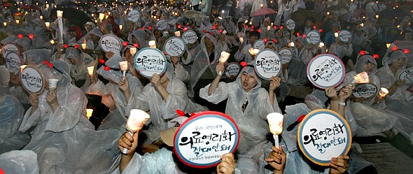 少し前に社会問題となった非正規職問題などなどで日本社会でも非正規職問題が大きなテーマになっていることを見ました。韓国社会で資本と政府は、非正規職を保護すると言って非正規保護法を施行して1年がたちましたが、むしろ非正規職は爆発的に量産され、差別はさらに深まりました。非正規闘争の代表的事例だったイーランド闘争もすでに1年がたちました。そこに、資本と結合した保守政権は国民の最低限の健康権を無視し、米国の要求を一方的に受け入れた牛肉輸入問題で国民と対立しています。