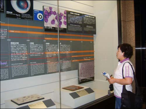 このコーナーでは、被爆後の各種の病気が潜伏期を経て、永い歳月にわたり、着実に発病することを展示していた。