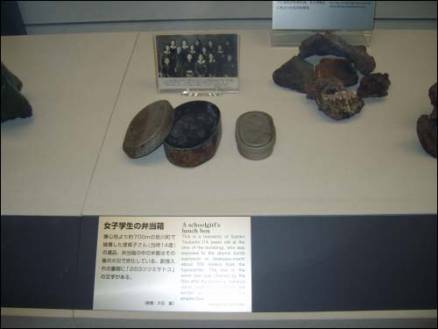 爆心地から約700m離れた岩川町で亡くなったツツミ・サトコさんの遺品のうち炭の塊のように変わってしまった弁当と原爆投下当時屋上から降った熱線を直接受けて木の壁に影が鮮明に写されたはしごと監視兵の姿が印象的だった。