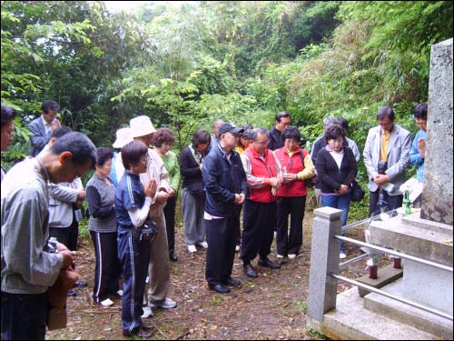 ▲ 朝鮮人の遺骸10具が埋まっている悲しみの現場、高島の無縁墓地。多くの人たちの遺体が全て入り混じっている可能性が多いからだ。