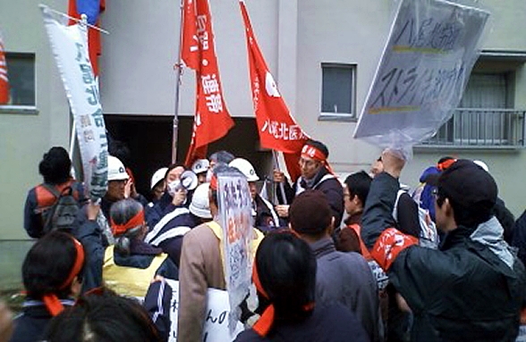 この応能応益家賃制度こそ、労働者階級に一切の矛盾を転嫁し労働者殺しで延命せんとする新自由主義攻撃そのものだ。(しかし、新自由主義そのもがますます恐慌の深淵に引きずり込むドグマなのだ) 西郡に襲い掛かる攻撃は労働者への攻撃だ!西郡の部落大衆は我々と同じ労働者だ!ひとつの階級だ!資本が持ち込んだ分断を全国連西郡とひとつの階級としてぶち破る!と新自由主義=道州制(民営化・分割)と真っ向闘う八尾北医療センター労組が西郡支部とともに闘いの中心に敢然とたちあがり牽引してきている。