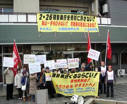 八尾市による住民Mさんへの住宅追い出し行政代執行攻撃の前日である、本日25日、全国連西郡支部と八尾北労組、闘う労働者・学生は、団結の力で姑息な八尾市住宅管理課の威嚇・恫喝を撃退した!