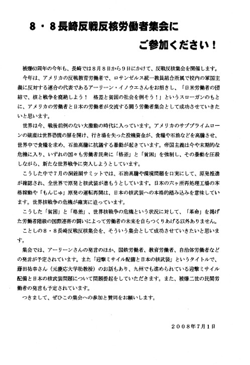 8・8長崎反戦集会の版下が届きましたので紹介します。