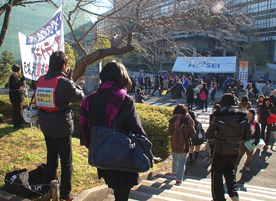 法政監獄大学は、闘う学生12人と、全学連を名指しし、入試期間の半径200メートル以内でのビラまき禁止なる仮処分を裁判所に出させ、大言論弾圧をかけてきた。